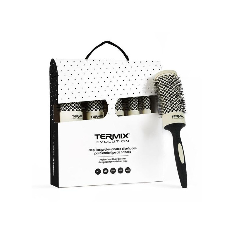 Řada TERMIX EVOLUTION představuje jemné kartáče na vlasy ideální pro jemné vlasy. Velikost-průměr: 17, 23, 28, 32, 43